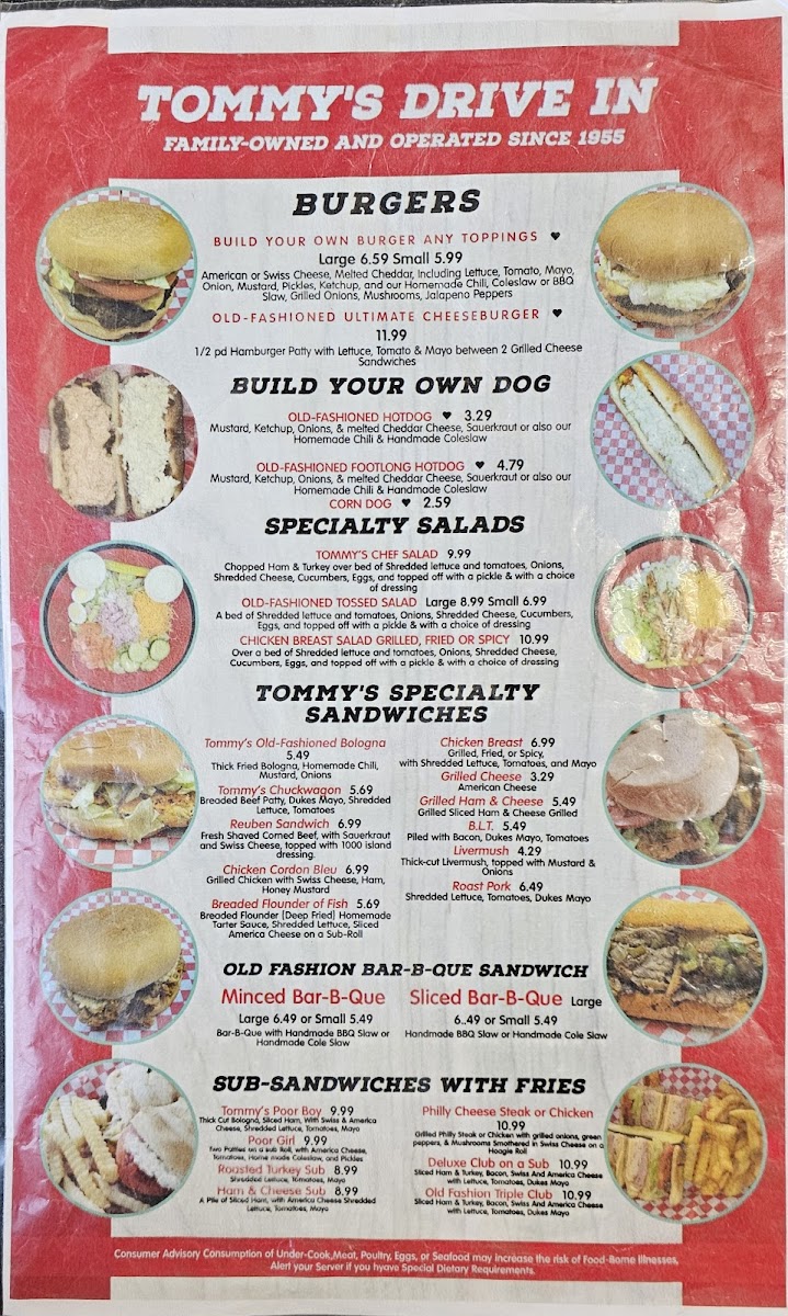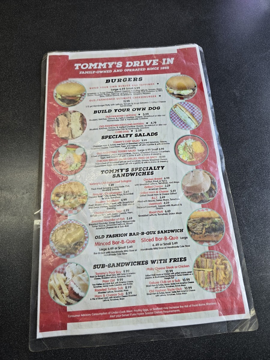 Tommy’s Drive-In offers a straightforward, no-fuss menu that reflects its down-to-earth, diner-style atmosphere. The focus here is on hearty, satisfying fast food—think classic burgers, crispy fries, and comforting sides that feel right at home whether you’re grabbing a quick lunch or settling in for an easy evening meal.